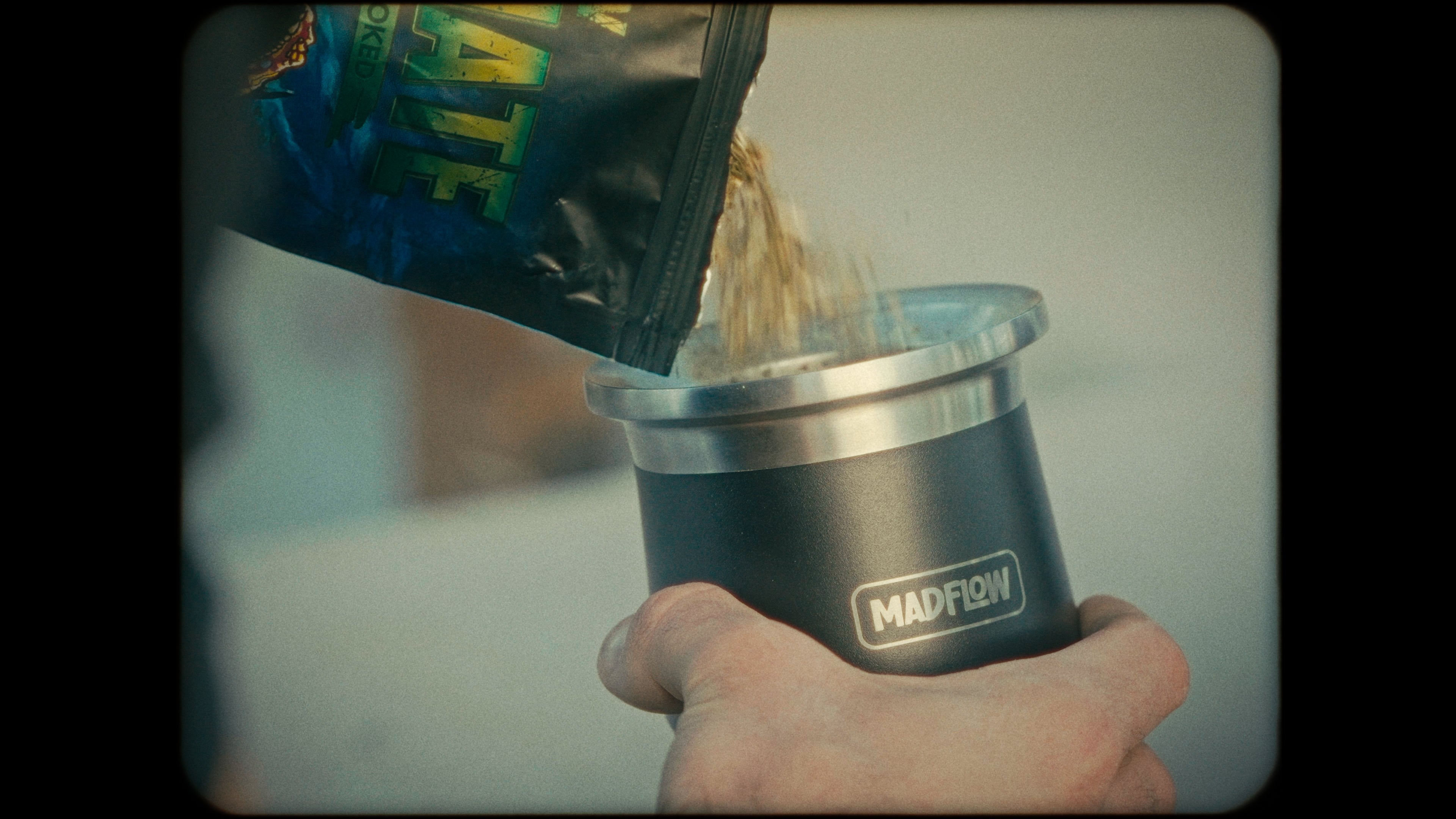 Tilt the mate cup so the yerba shifts to one side, forming a slope